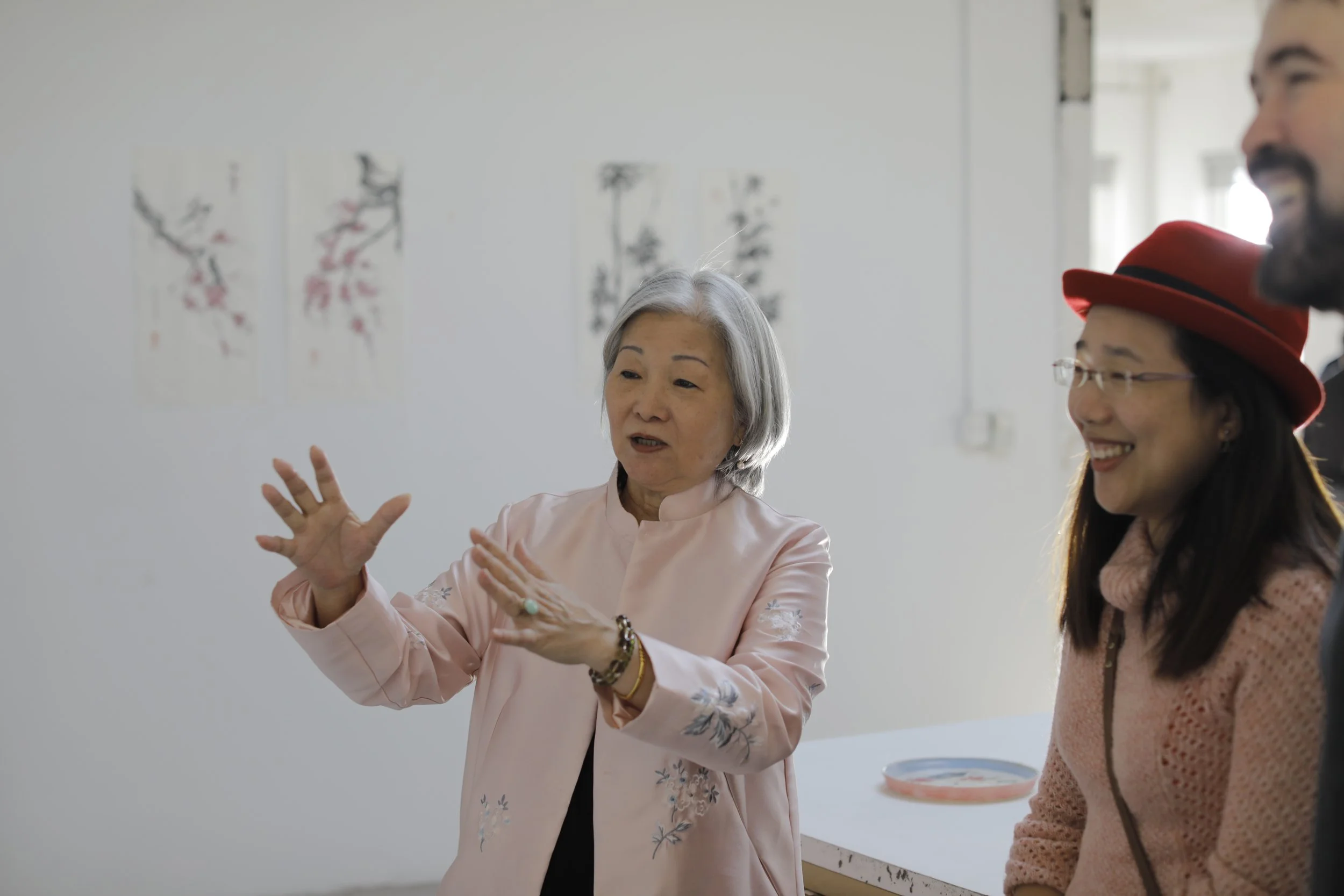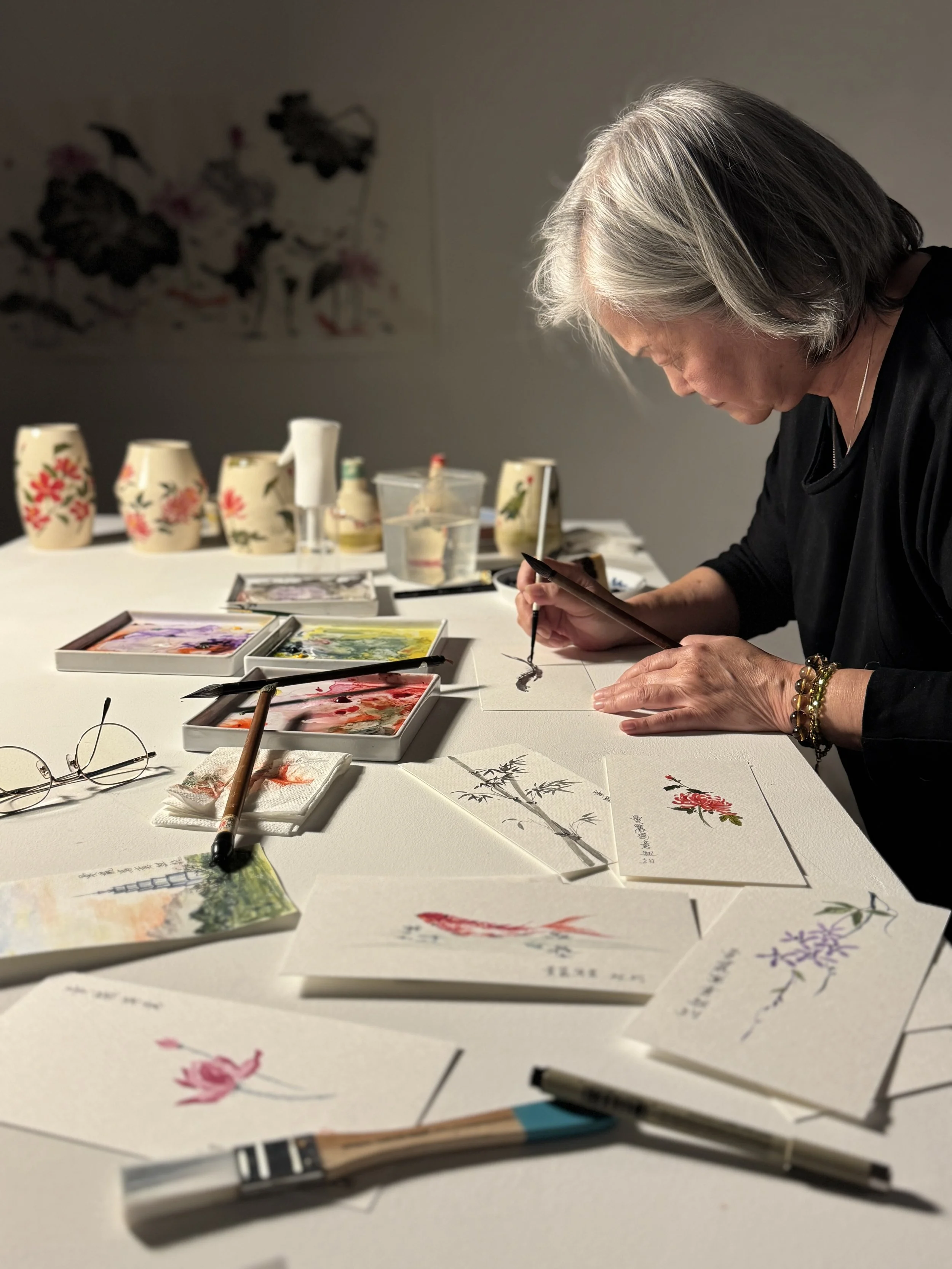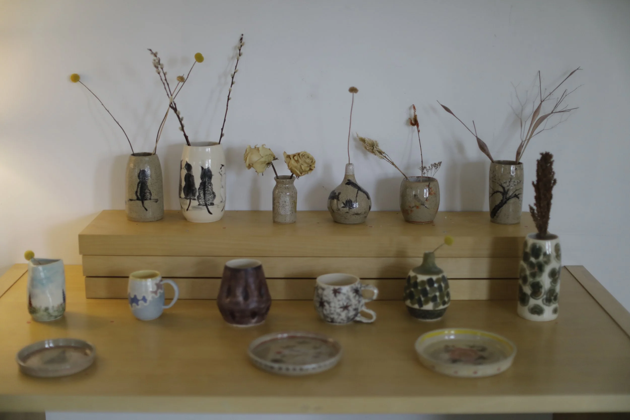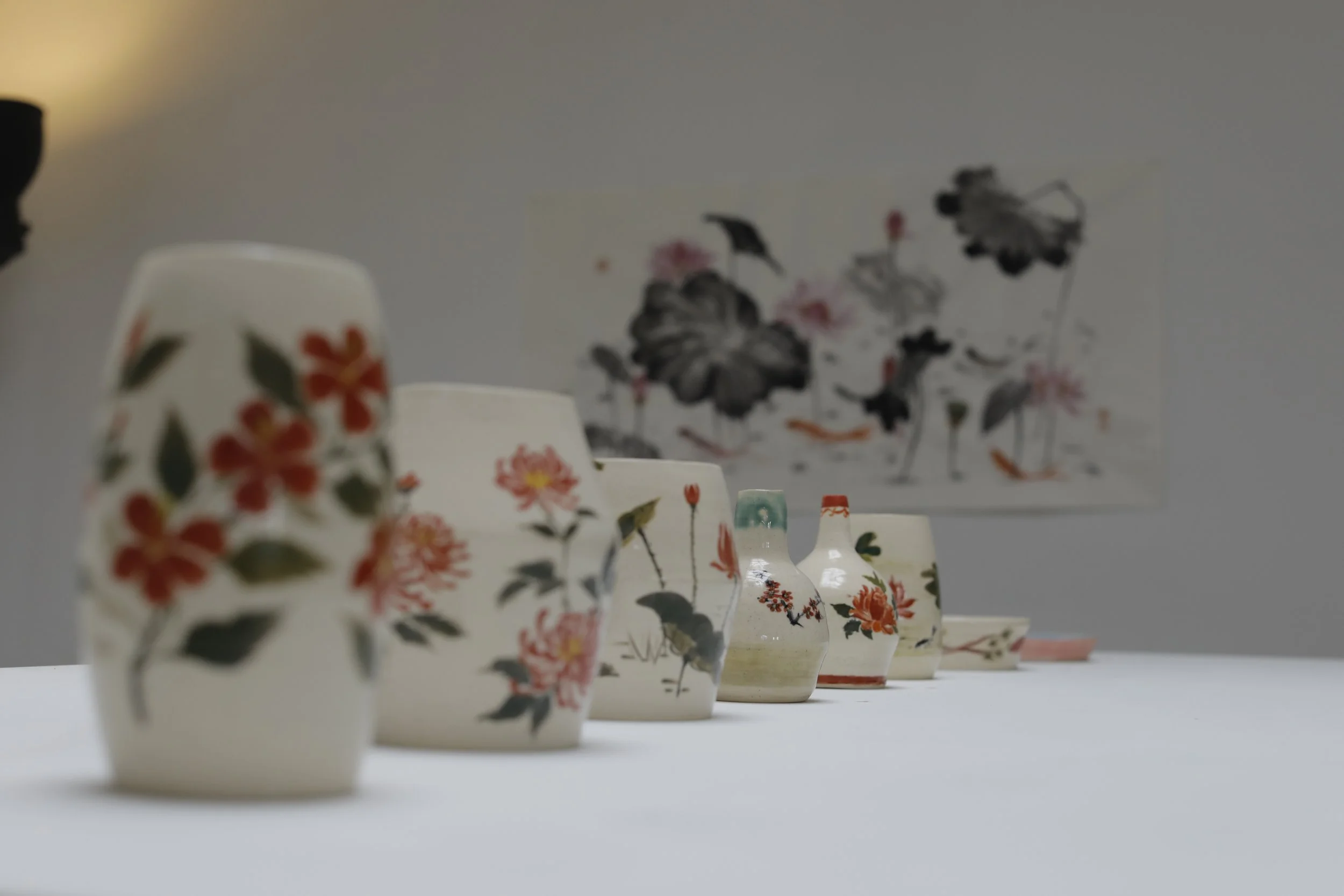 By the end of her three-month stay in New York, she had created something beautiful—a body of work that deserved to be shared. So, I held her first-ever art exhibition in Brooklyn, showcasing not only her paintings but also over 40 pottery pieces we collaborated on: I made the vessels, and she transformed them with her unique touch. Many of our friends came together to celebrate her creativity.